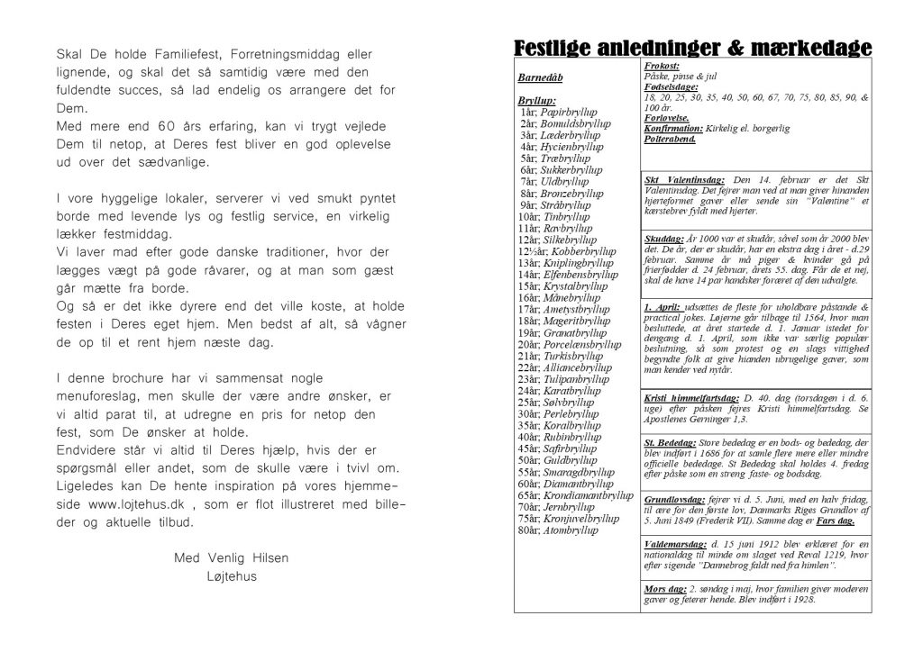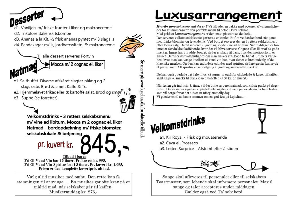 Skal De holde familiefest, forretningsmiddag eller lignende, og skal det så samtidig være med den fuldendte succes, så lad endelig os arrangere det for dem.