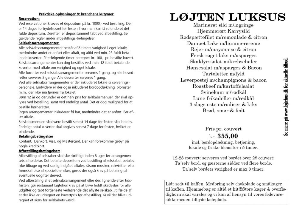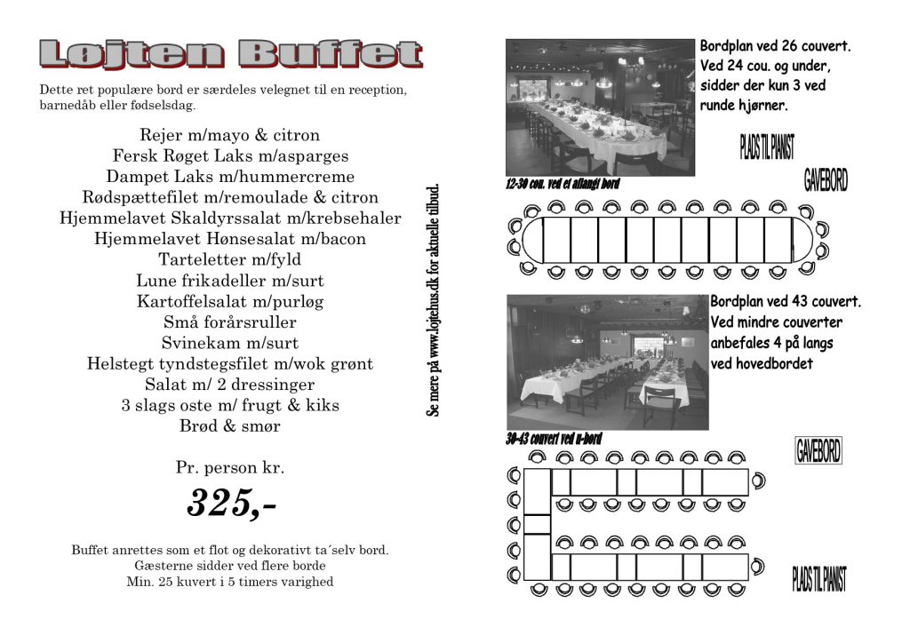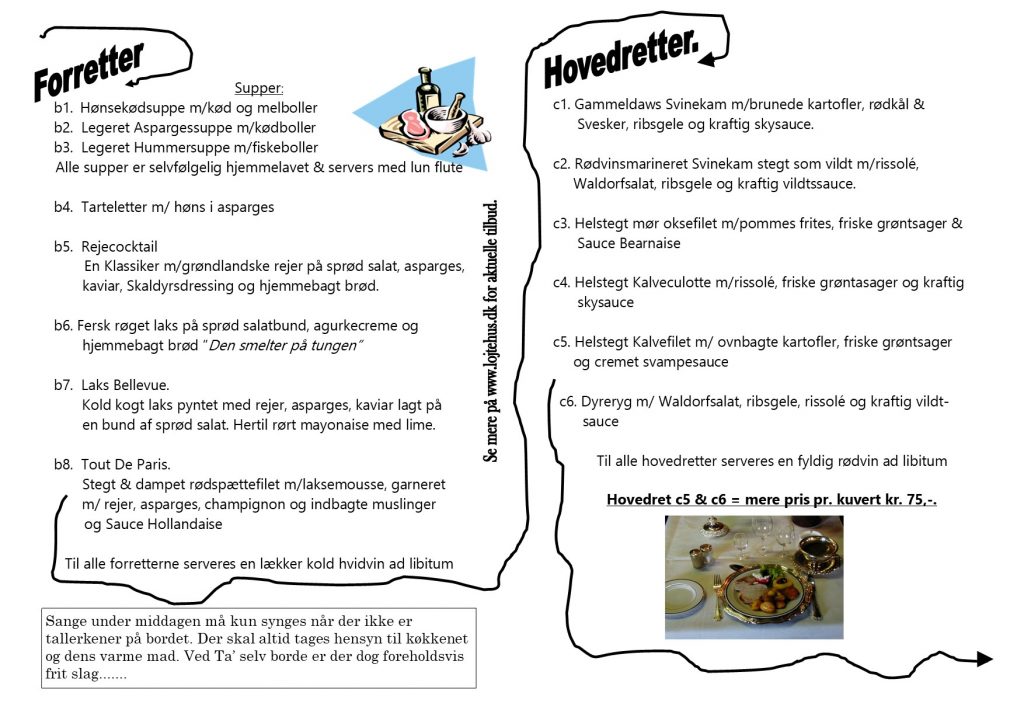 I vores hyggelige lokaler, serverer vi ved smukt pyntet borde med levende lys og festlig service, en virkelig lækker festmiddag.