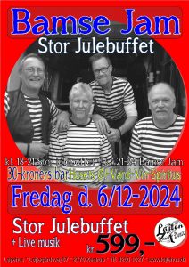 Fredag d. 06/12-2024. Bamse Jam er det tætteste, man kommer på at opleve den folkekære Flemming Bamse Jørgensens store sangkatalog på den danske livescene. Bamse Jam leverer med stor respekt for Flemming Bamse Jørgensen. Bamse Jam spiller et set intens Bamse og 2 set krydret med andet populært dansk top.